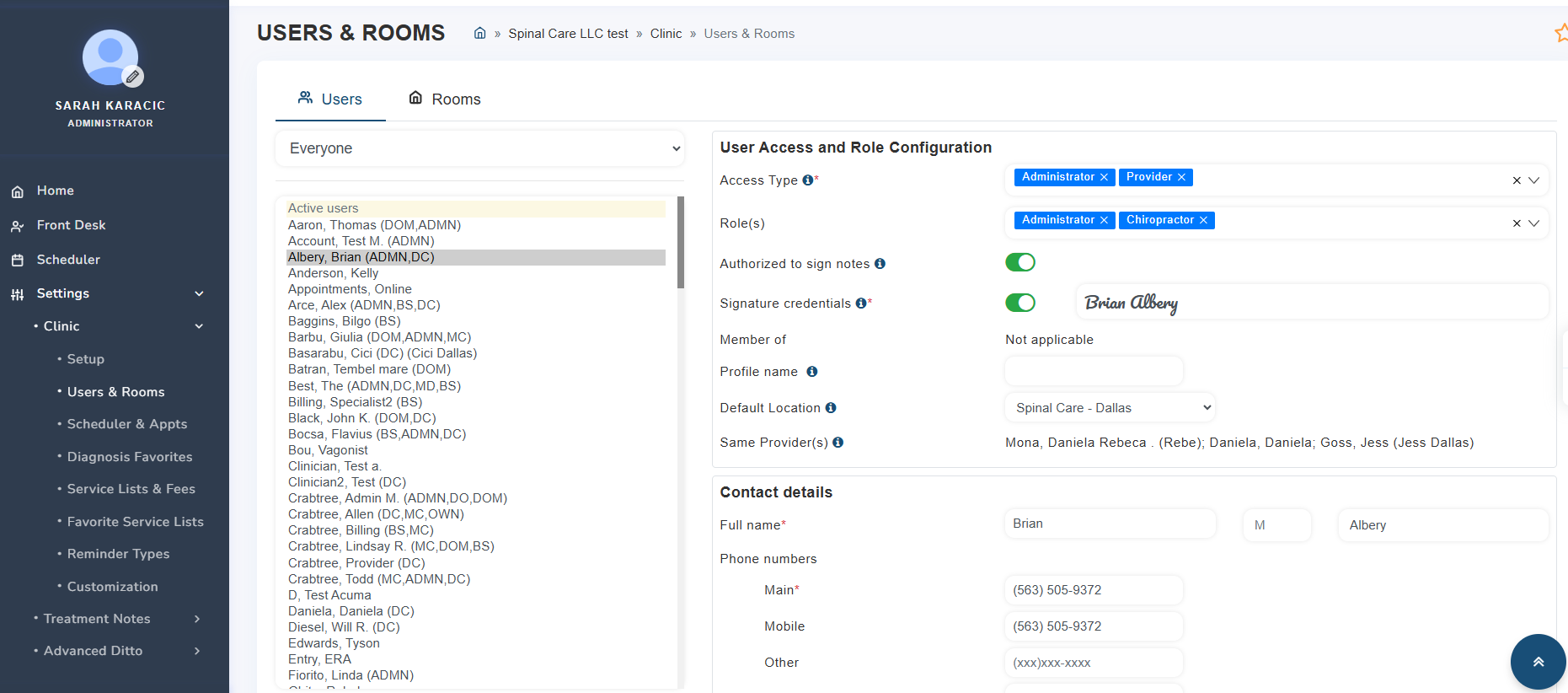 - Users- This is where you add/manage staff members who can log in to your clinic system.
