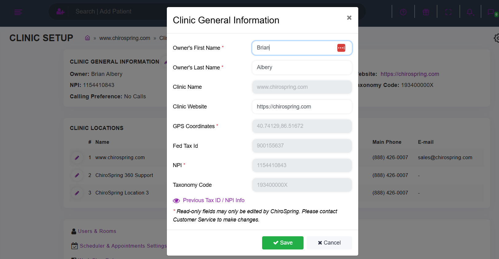 - Go to Settings - Clinic - Setup and click the pencil icon at top to enter your coordinates (you can find them on Google Maps)