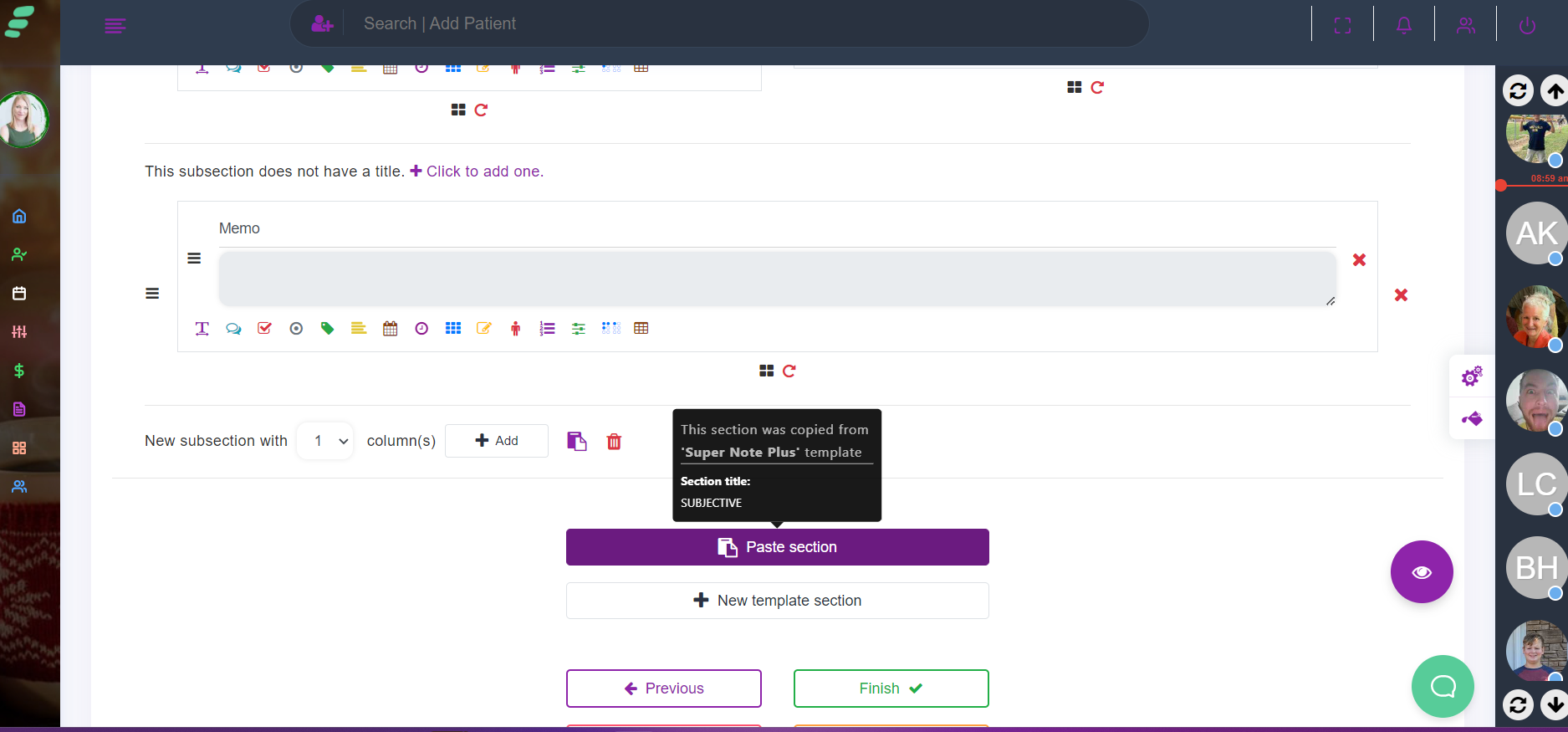 - Active On EHr - Is in the upper bar of screen that stays stagnant, when you are in a patient file, that icon will appear and can choose template activated and Start a New Note when selected