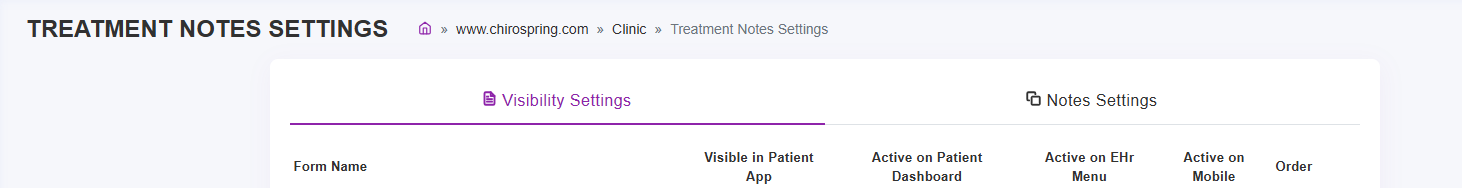 - Set Treatment Note Order (controls display order)