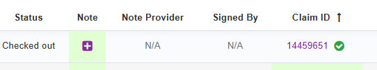 If a note (or fee slip/claim) hasn't been started, you can click this (+) icon and it will open Patient Treatment Dashboard, when you choose a note Template it will pull the DOS from the report automatically and you can complete note, save/sign and will ask if you want to attach the fee slip