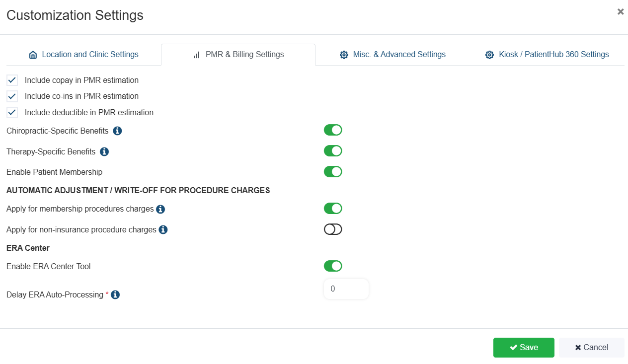 Chiropractic-Specific Benefits: For any service that falls under chiropractic, PMR will use the copay, coinsurance and deductible under this category. This section makes your PMR calculation more accurate for chiropractic codes.