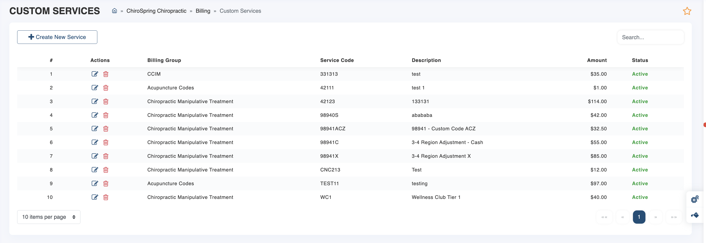 There may be times when you want to create a custom procedure code. This can be done by going to Billing/Settings/Custom Services.
