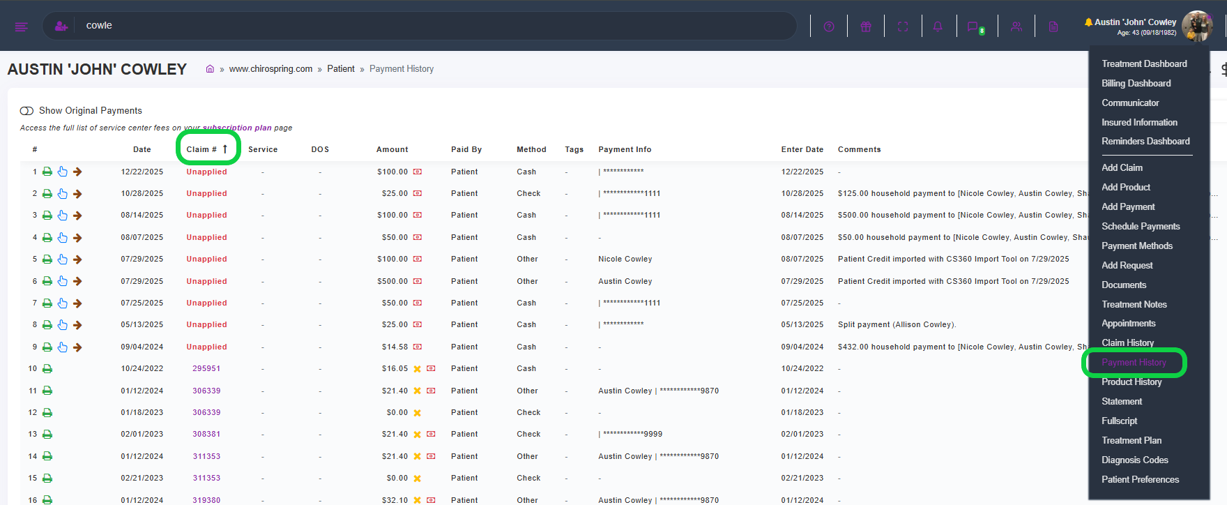 - Patient Menu → Claim History