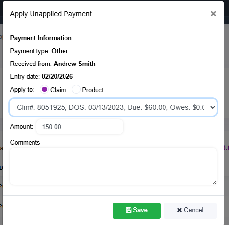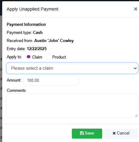 If a payment was applied incorrectly or needs to be reassigned, it can be unapplied from the claim.