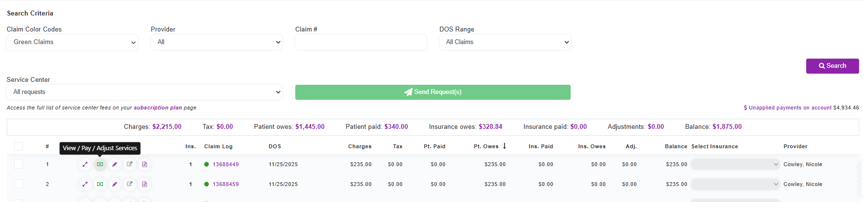 - Locate the claim you want to apply the payment to.