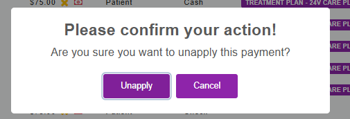 - Unapply to remove the payment