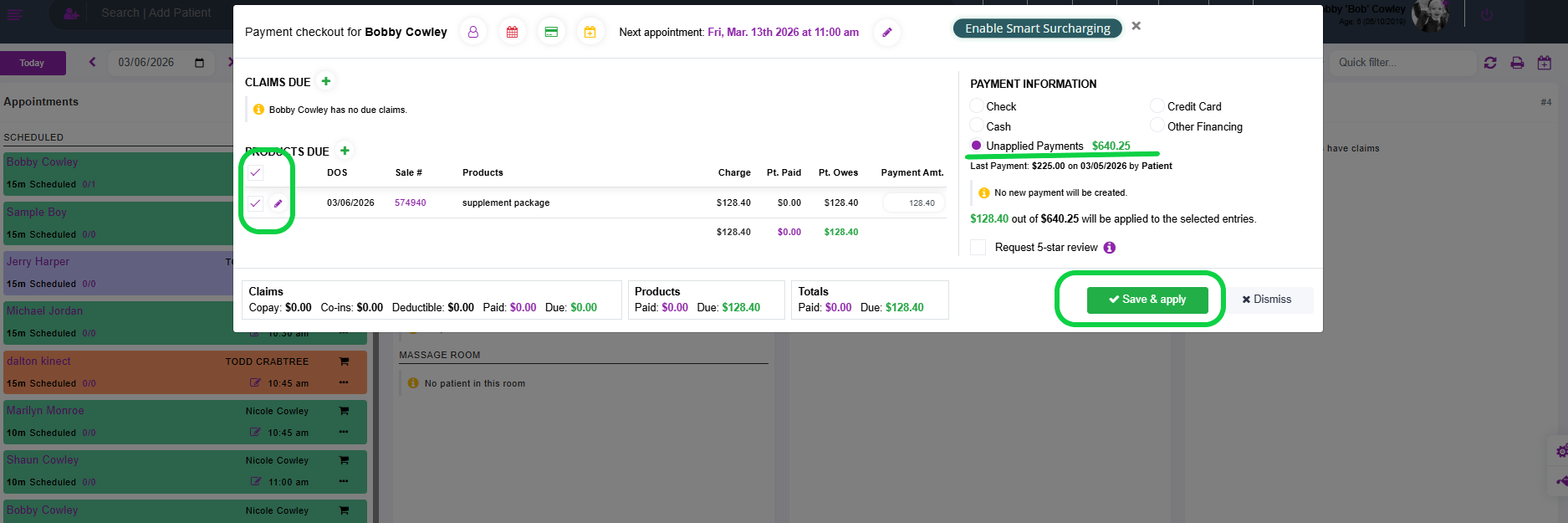 Applying Payments from the Patient's Checkout Screen (Front Desk)