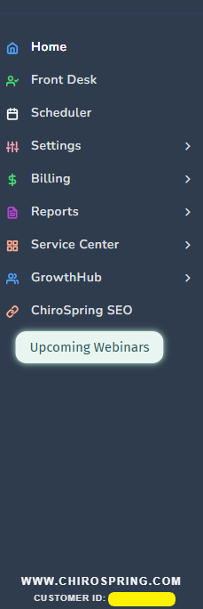 ChiroSpring 360's Left Side Menu Options will depend on your User Role