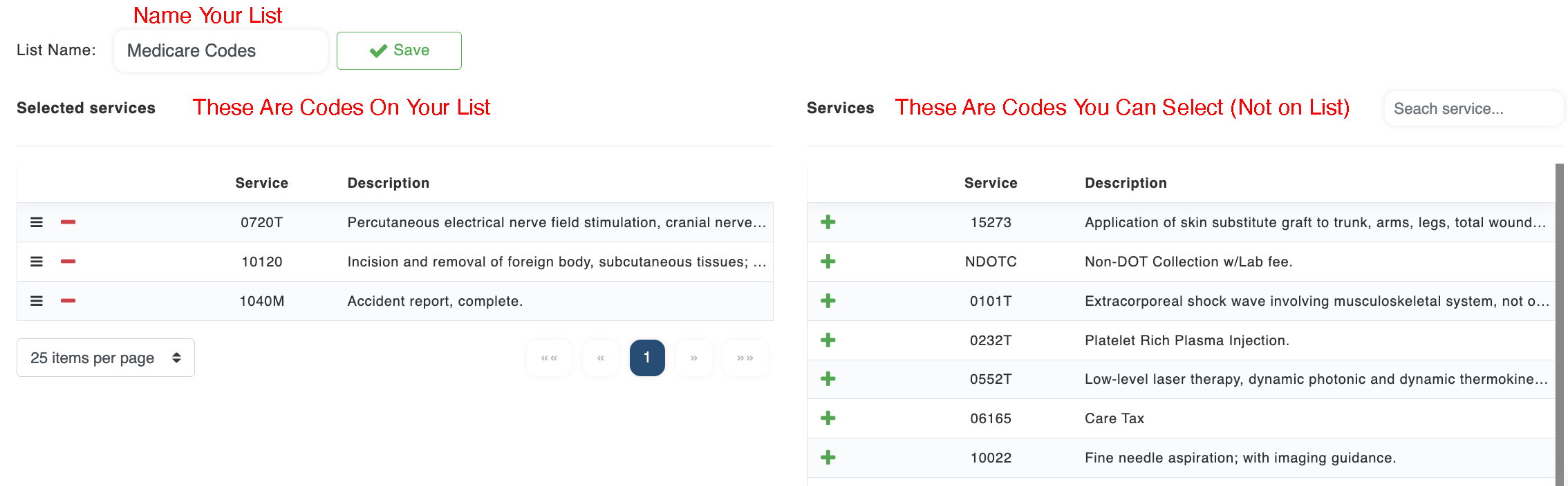 Once you have added your codes you may arrange them up/down using the drag-and-drop feature. Click "Save" when you are satisfied with your list. You can always go back and edit your list at anytime.
