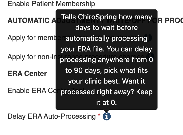 Delay ERA Auto-Processing - hover over the (i) to get a full explanation of this feature.