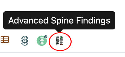 - Advanced Spine - This is the "physical" spine you will see in your note. Here you can record adjustments and findings. Now, because adjustments should appear under Plan and Findings should appear under Objective, we've made it possible to separate where this data goes in your note.