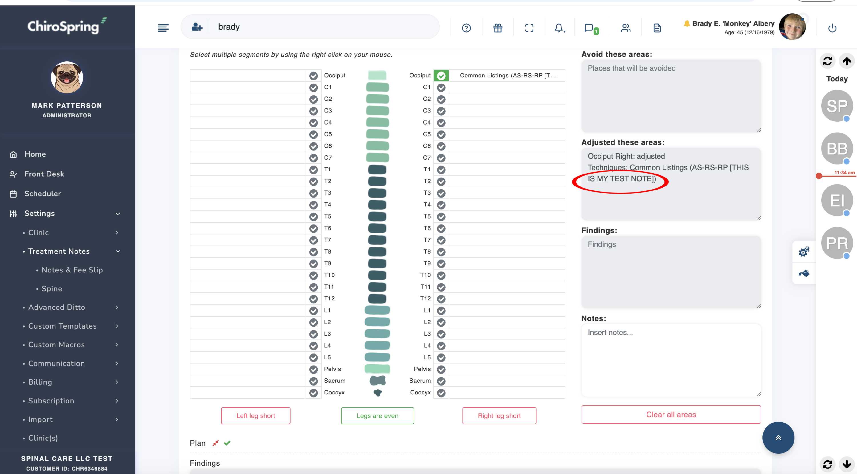 If you forget to add the "Advanced Spine Findings" section to your note not to worry. The findings will still appear in your printed note, albeit combined with the adjustments.