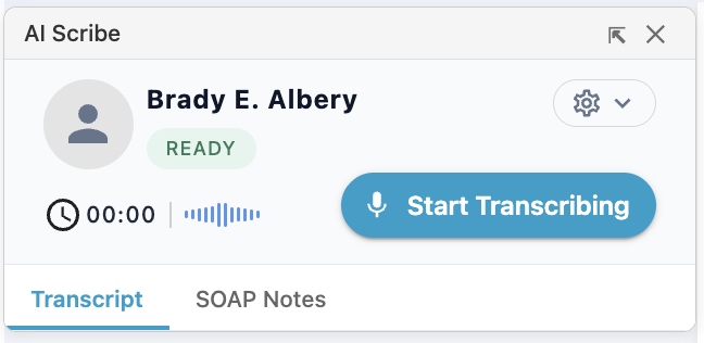 The AI Scribe agent will appear. When ready click "Start Transcribing".