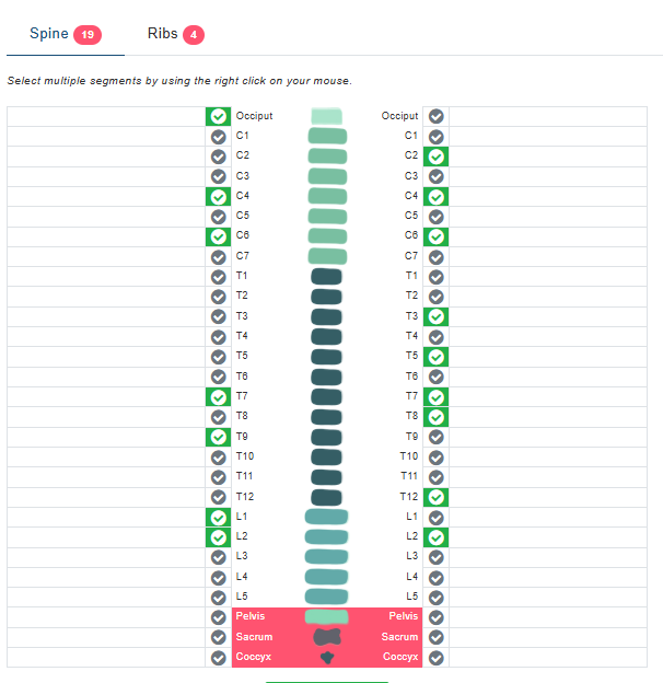 We’ve added a new visual indicator that appears in both the Spine and Ribs tabs inside Advanced Spine. This helps providers document findings faster and with better clarity across cervical, thoracic, lumbar, and rib regions.