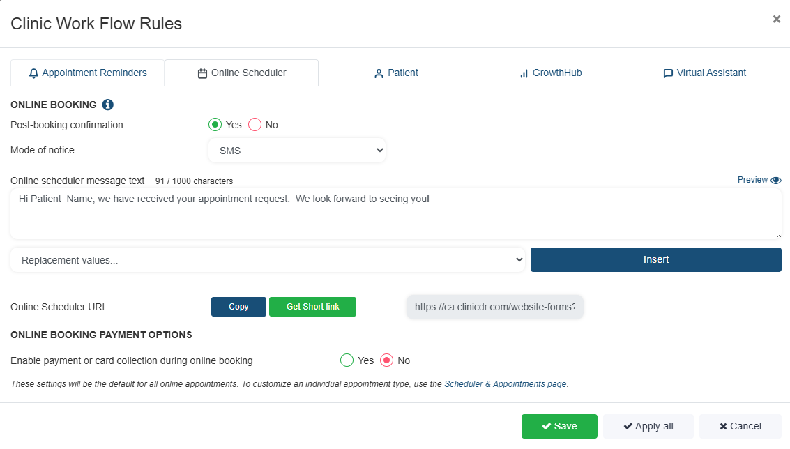 Workflow Rules determine what messages are sent to patients, when they’re sent, and how they’re delivered—while still allowing flexibility through patient-level communication preferences! With Workflow Rules, you can manage Appointment reminders, Booking confirmations, GrowthHub features like Enhanced Reminders, Birthdays and Review Requests (part of Growthhub Pro), and Virtual Assistant (part of Growthhub Pro).
