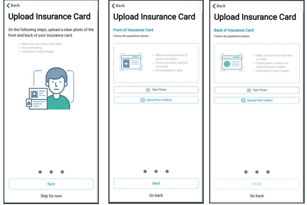 - Encourage patients to upload insurance cards via the mobile app.