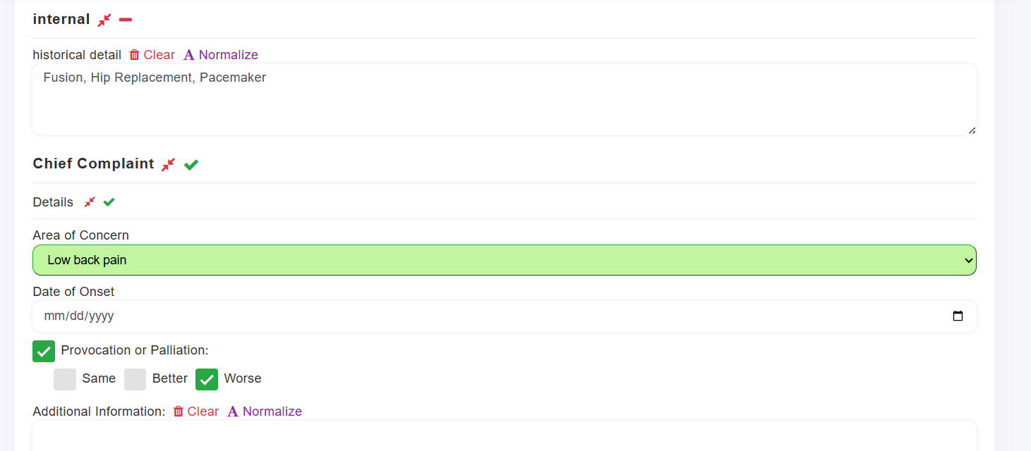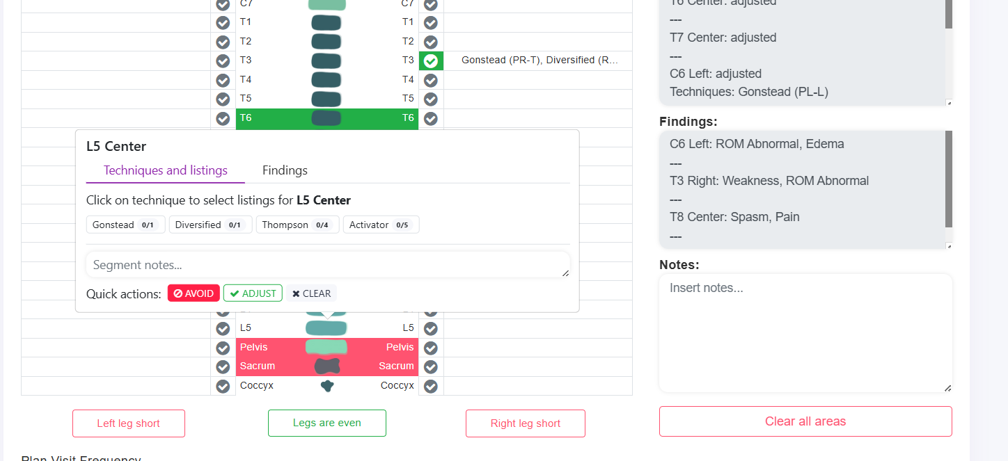 On the new Advanced Spine you can also document contraindications directly on the spine as well as include additional notes: