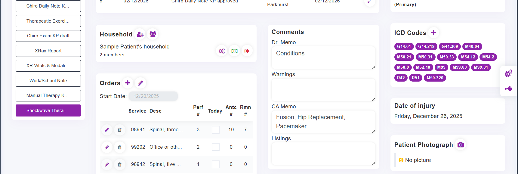 ChiroSpring 360 has a few different areas where users can document patient warnings, non service/clinical related notes, and/or contraindications.