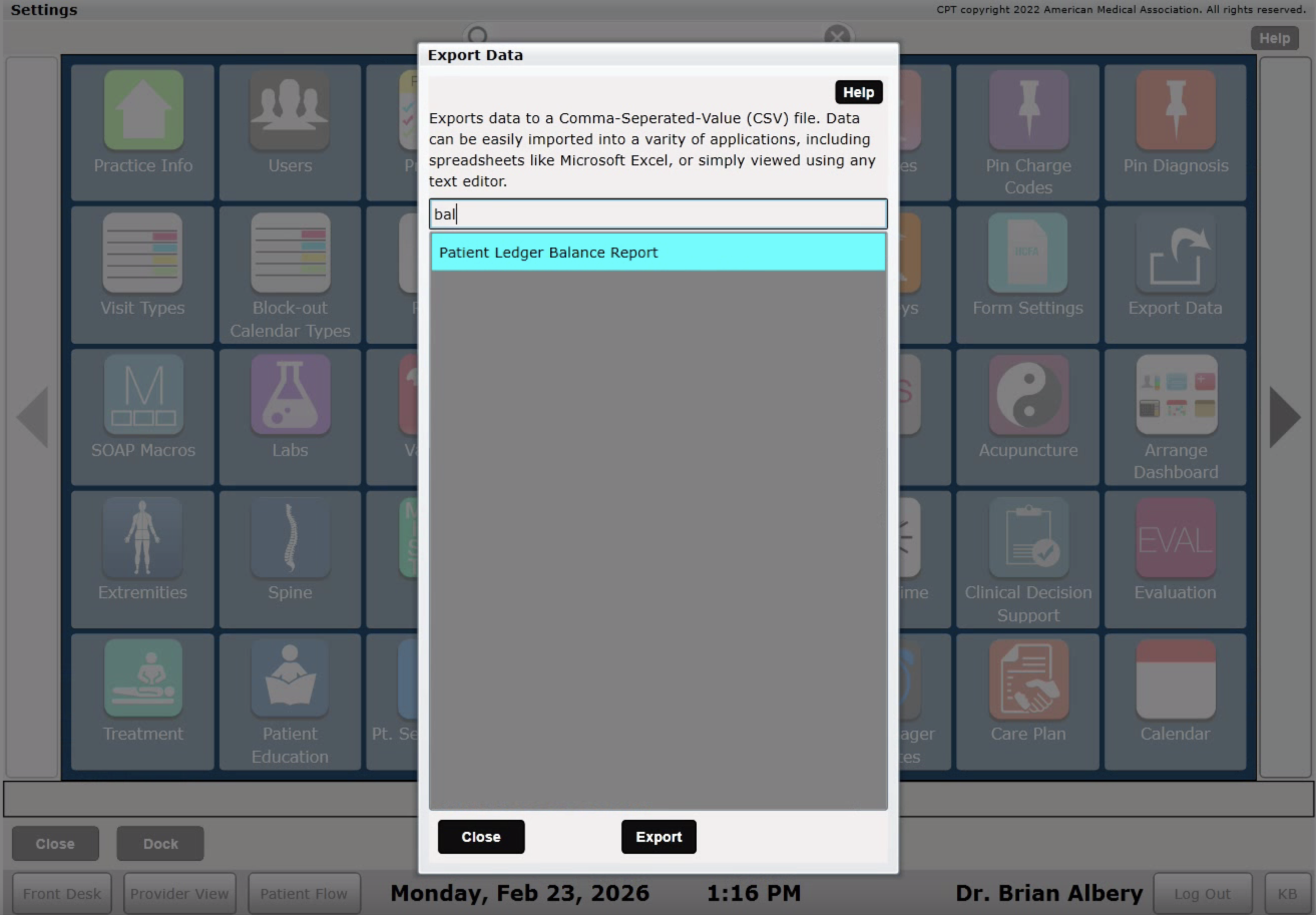 Exporting Balances from ChiroSpring Desktop