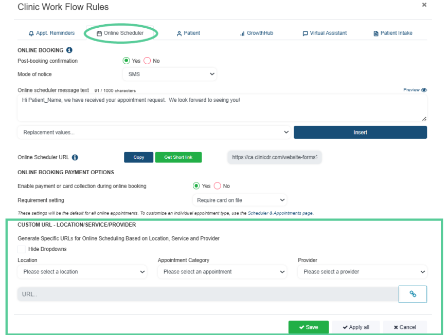 - Route patients to exactly what you want them to book or complete