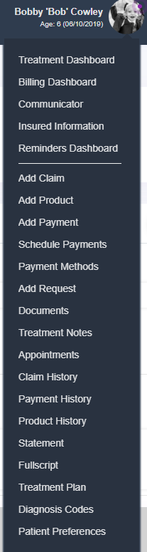 Here you can view all claims for a patient, view the claim log, apply payment, edit PMR or even submit a claim to secondary insurance. You can also see the "patient owes" and "insurance owes" balances.