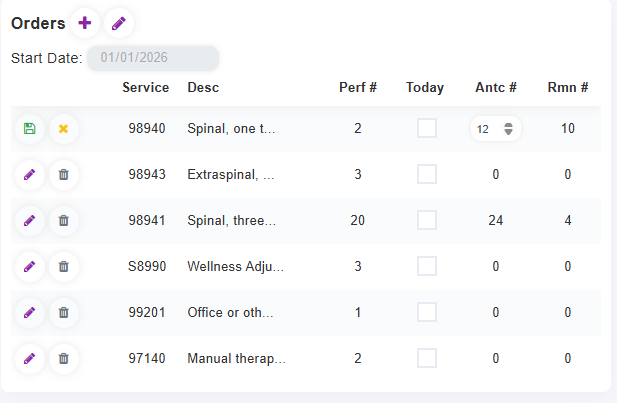You can select the Date Picker to choose any date and will track all services since that specific date. You can set Antc #: Anticipated and it will track