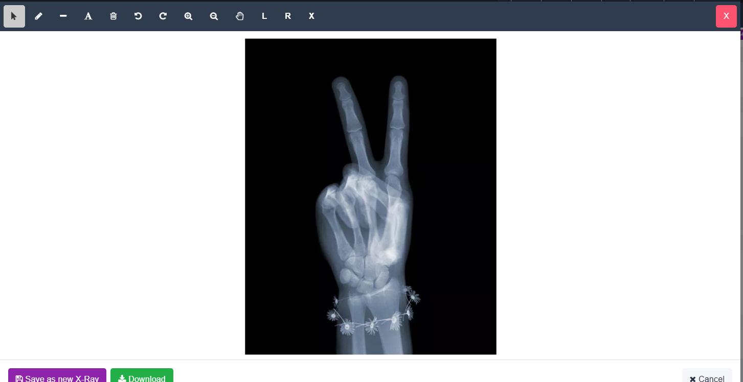 Displays uploaded images or attached to the Xray folder in Documents. You can touch to open full screen and have Annotation options: