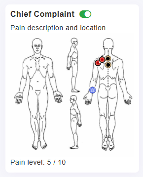 - The Chief Complaint will show ONLY the complaint patient completed through Check In of current day. You can Toggle On if you want to print in today's completes Note(s). It will refresh tomorrow, there is not a way to go back and review these, outside of viewing them in the completed note for that Date of Service if toggled on