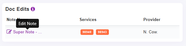 - You can Click on the note name to OPEN TODAY's already started or completed note and edit the Note and/or Fee Slip from here