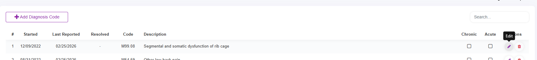 - Edit/Delete Diagnosis Code